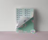These 75 prints were screenprinted by hand. The bottom sheet is a jade paper with natural fibers providing texture and three layers of print: yellow, pink, and white overlay. The top vellum sheet was pulled with black ink. Each bottom sheet is archival jade, 80lb; the top sheet is archival UV Ultra white 17lb.